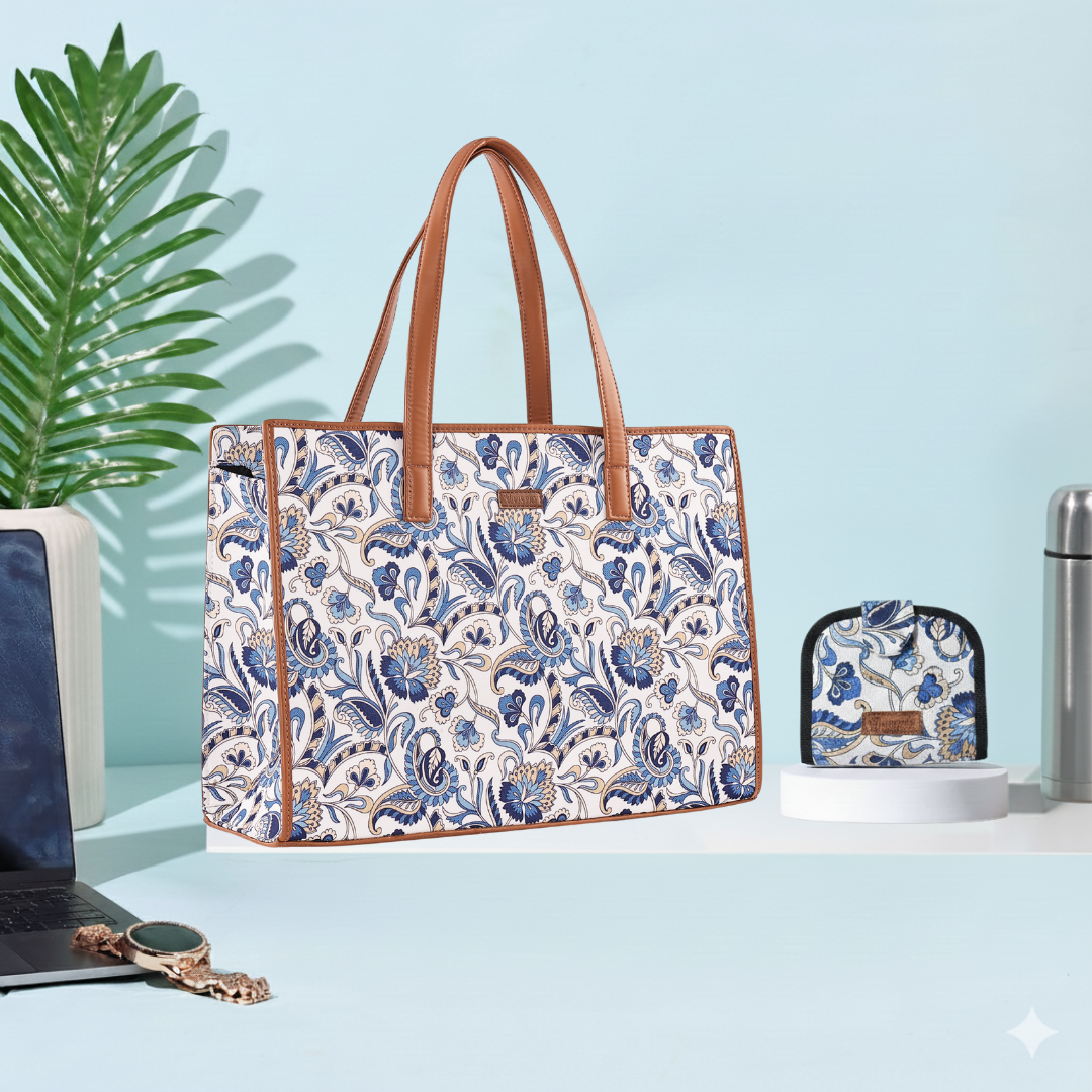 Combo: Blue Vista Signature Work Tote + Bitsy Foldable Pouch
